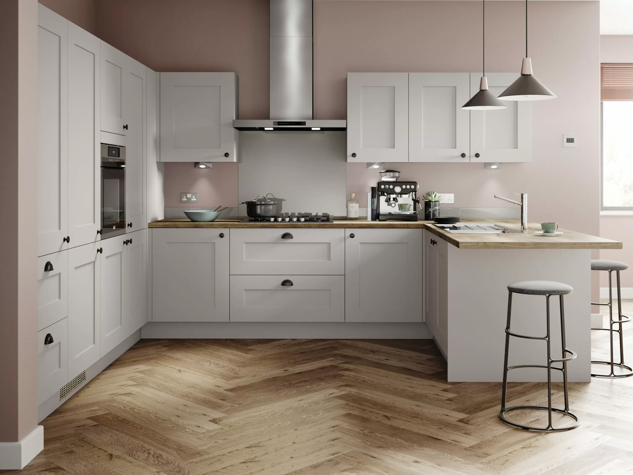 Cranbrookâs classic shaker design showcases a mix of traditional rustic charm alongside a modern scandi style. Choose from a selection of finishes in this shaker style kitchen that is characterised by its versatility and simple design.