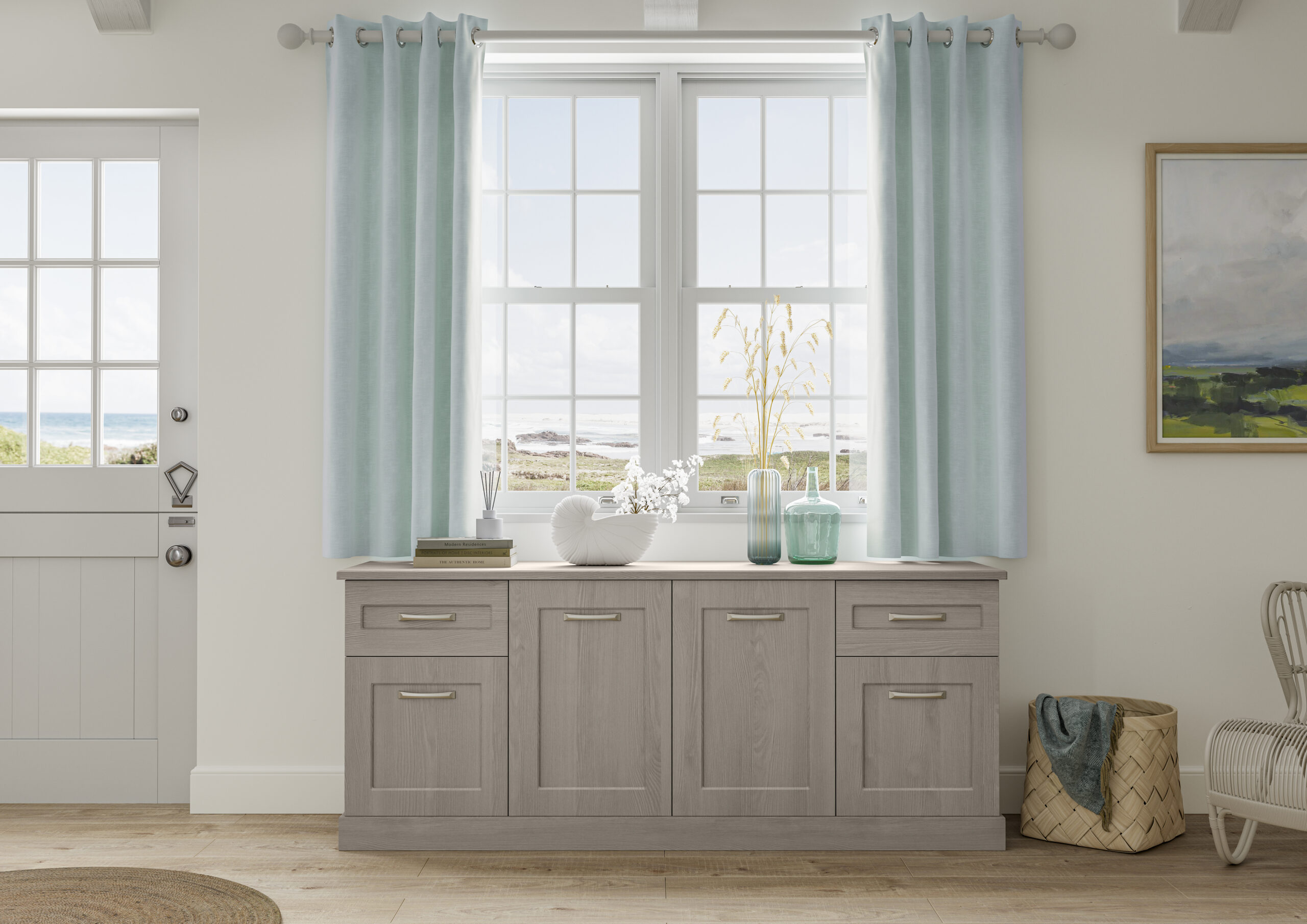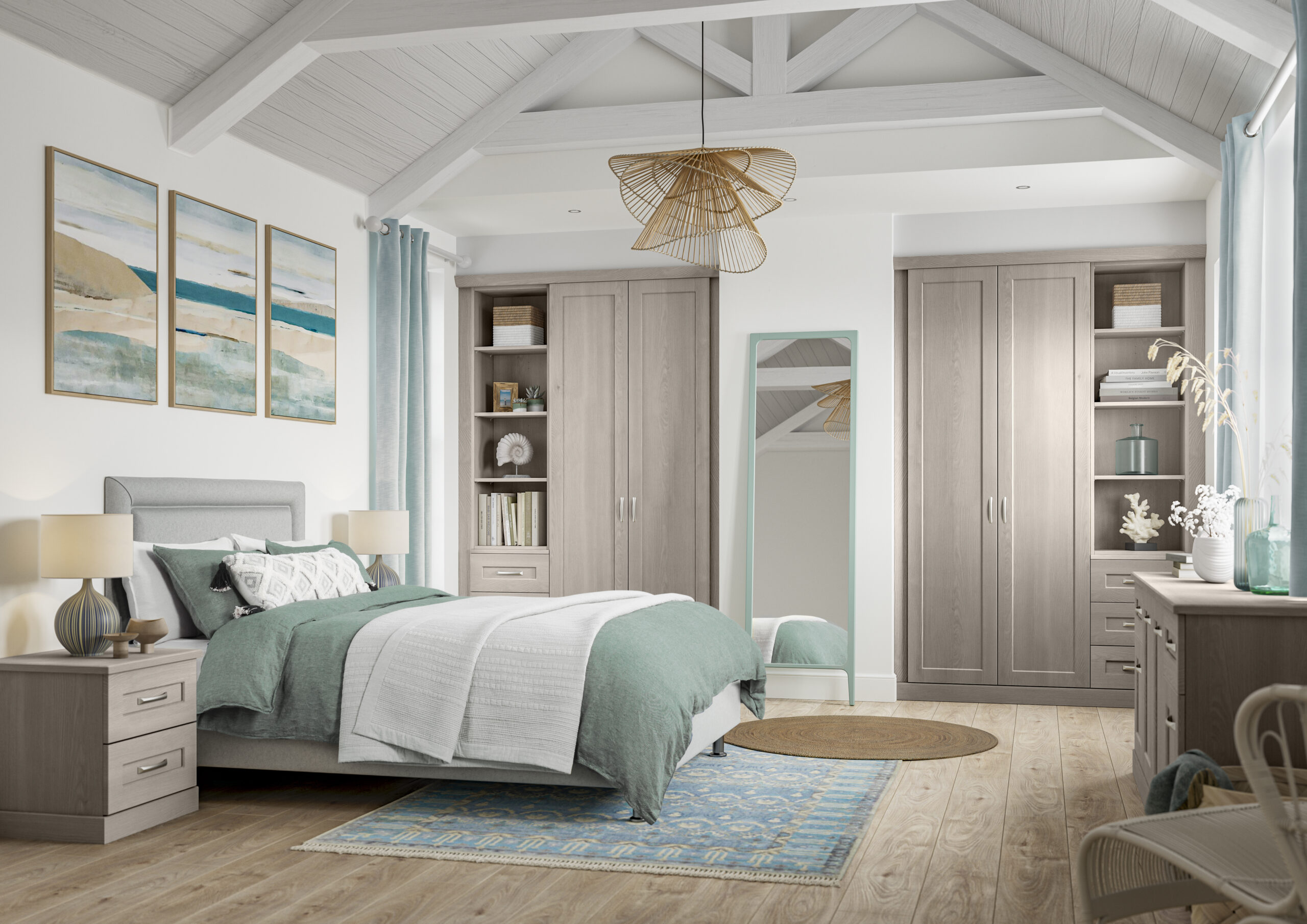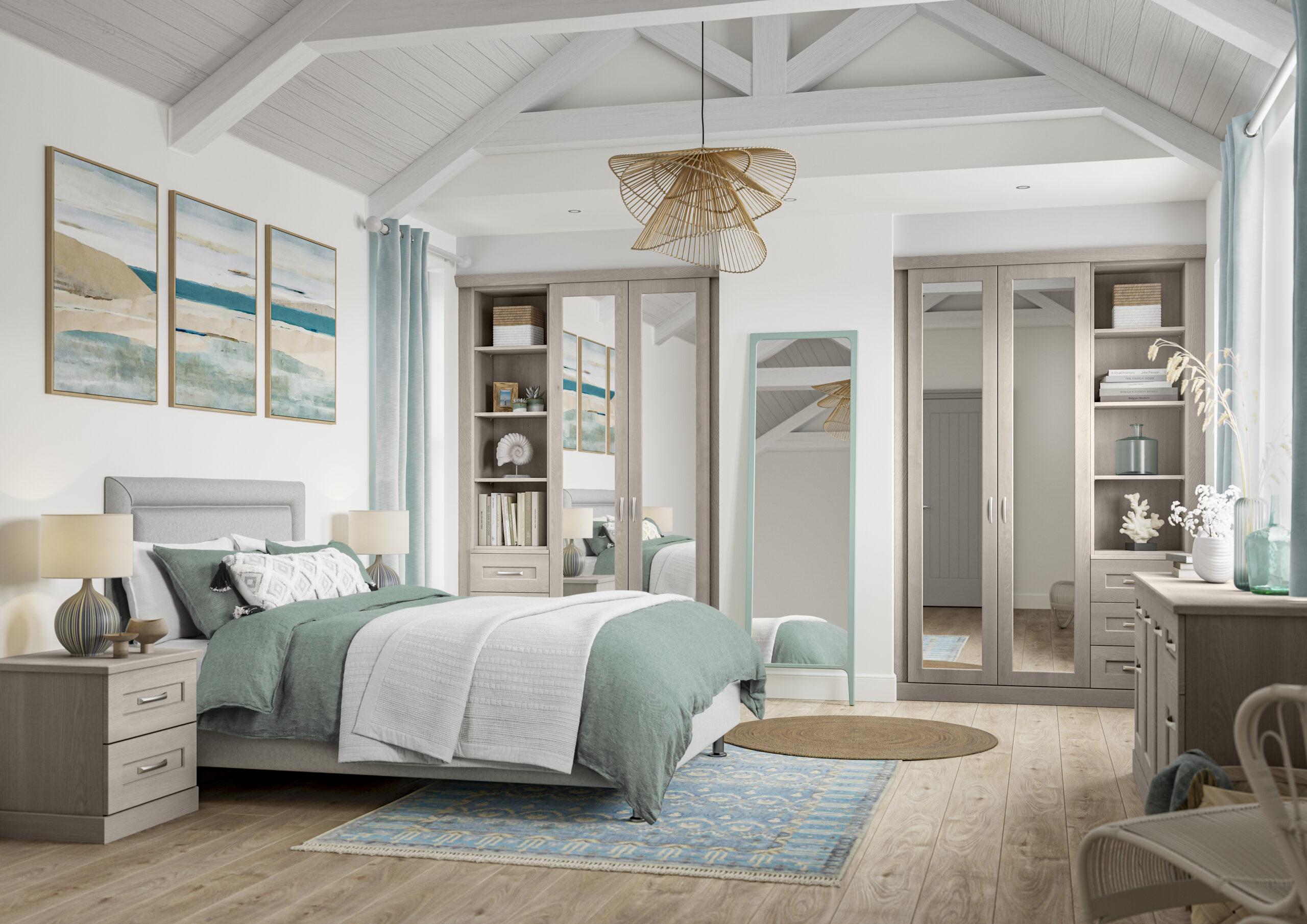 Hallaton’s unassuming clean lines and recessed single panels are unmistakably shaker. Hallaton is clean and versatile with optional full length mirrored doors that will bring brightness to any room. Available in a number of finishes, Hallaton works well in all environments to help you create your own stunning space.