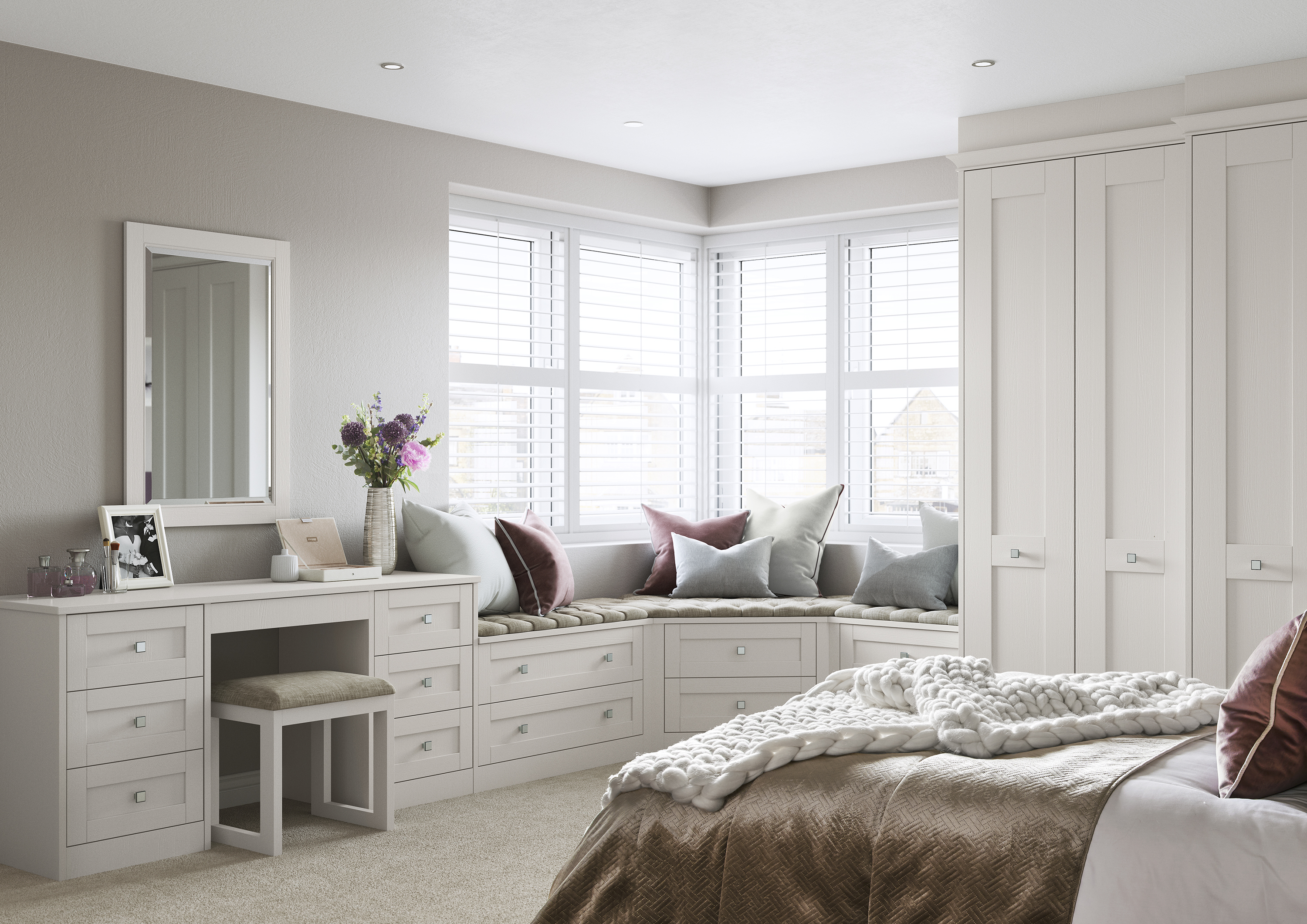 Milton is an instant Classic. An elegant and timeless shaker door style Painted in soft satin over light woodgrain and available in 12 colour options. Each of these colours can change the look of the room from the simple brightness of Soft White to a more urban and pared-down Light Praline. The look is completed by adding either a painted or satin Nickel handle.