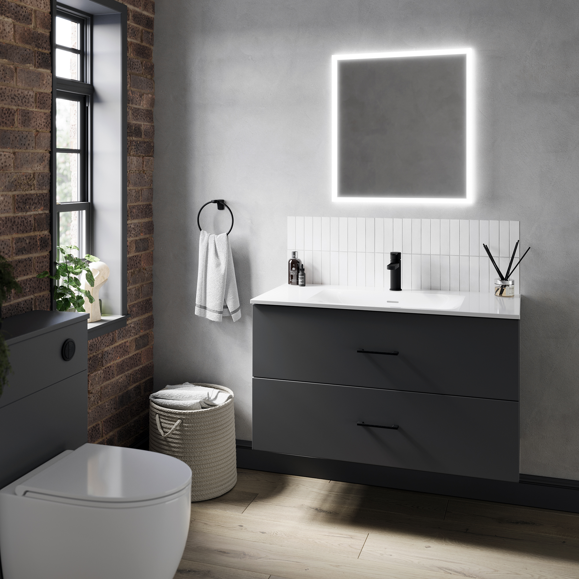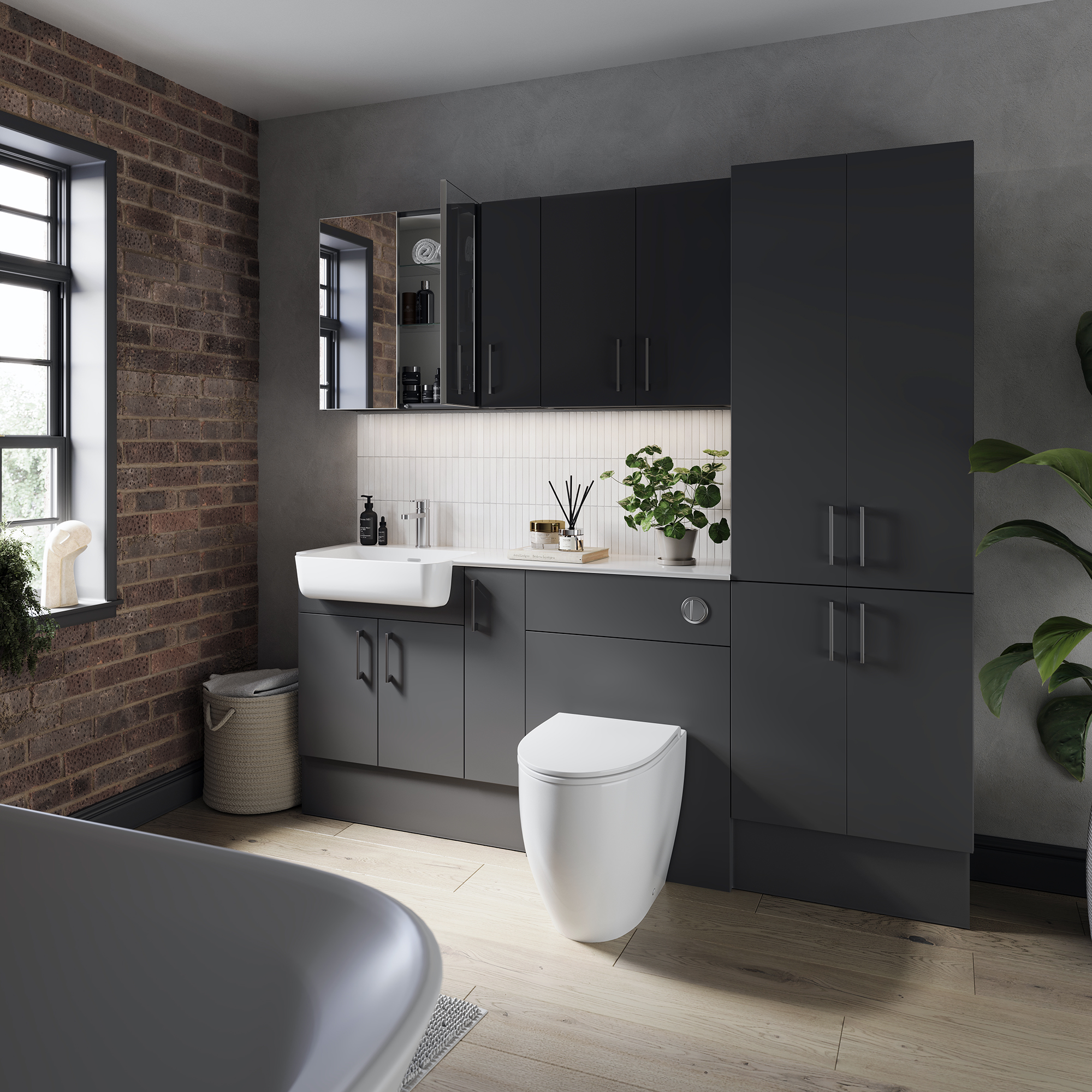 The rich, charcoal tone combined with the sleek, slab design makes these Tempo fronts a standout element in any space. Whether in a small WC or a larger family bathroom, the deep, dark colour creates a warm, intimate atmosphere. Choose from a variety of cupboard options to create a tailored fit for rooms of all sizes, providing ample storage while keeping essentials neatly tucked away.