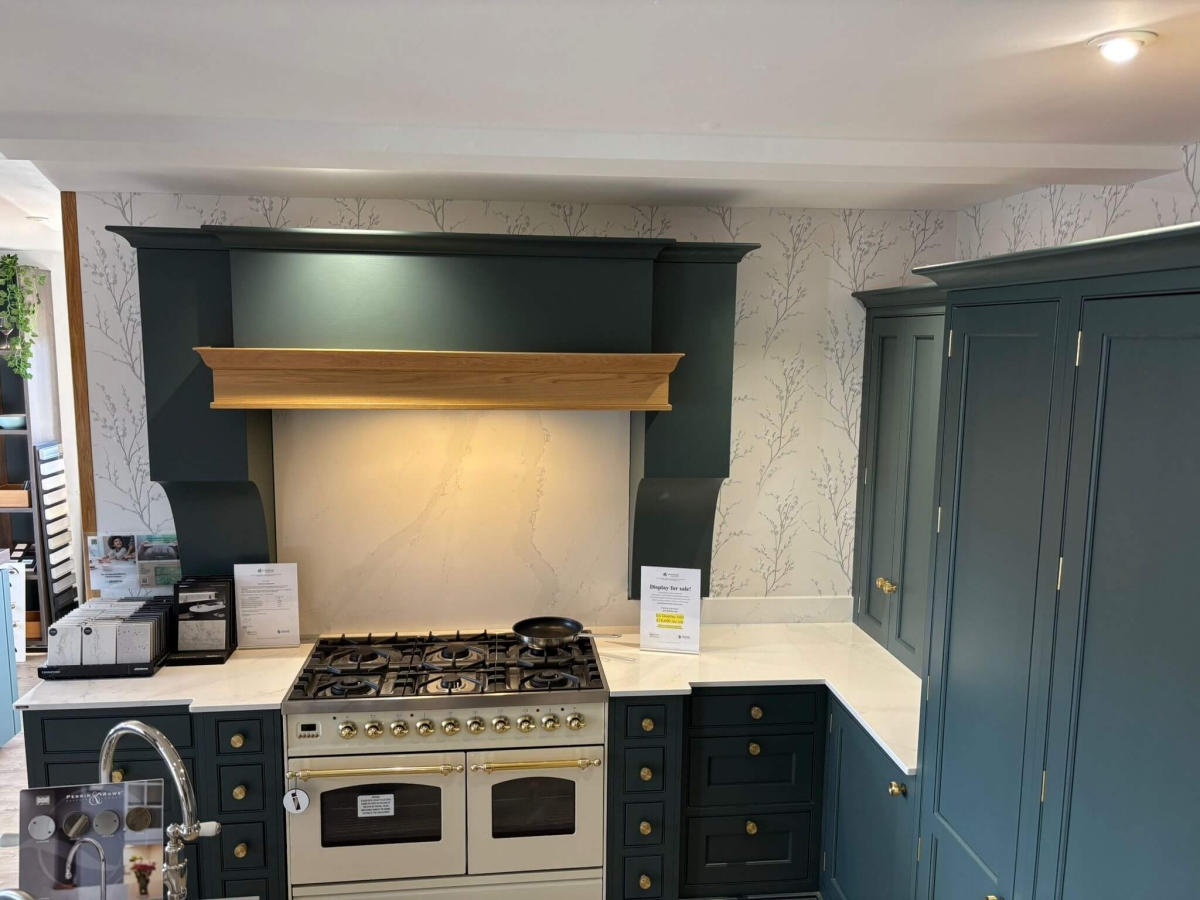 Ex display Caledonia Kitchen by Ashley Ann. Installed in 2024. Painted ash with oak carcases and solid oak dovetail drawer boxes.