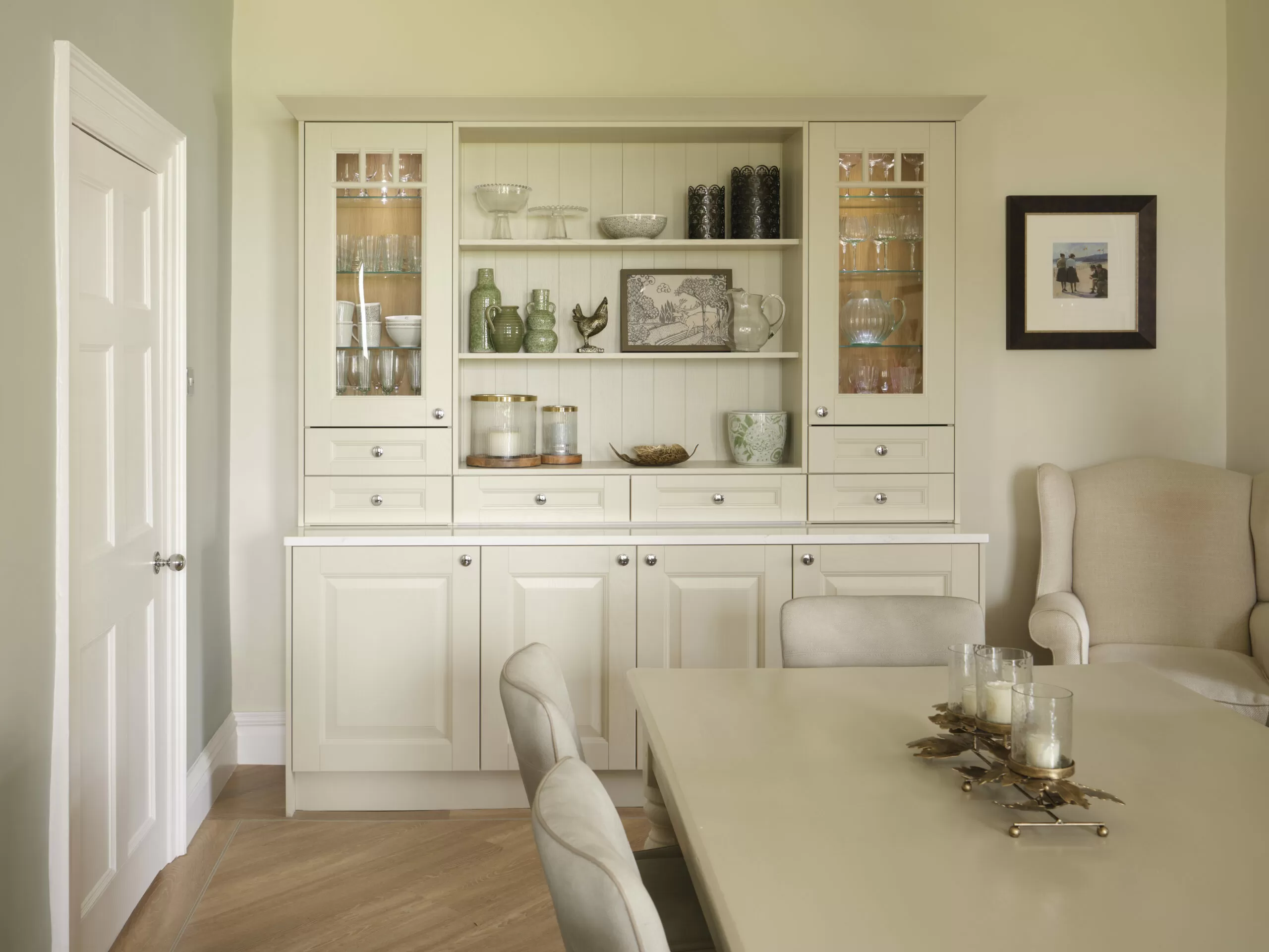 The Laura Ashley Bedale’s painted doors are inspired by the kitchens and pantries of period townhouses. Combined with modern colour tones and delicate handles, the design is elegant and timeless. Bedale’s unique features include glazed bridging cabinets which complement perfectly with the glazed wall cabinets. Cabinet interiors are also available in a choice of contrasting decors for a luxury finish.