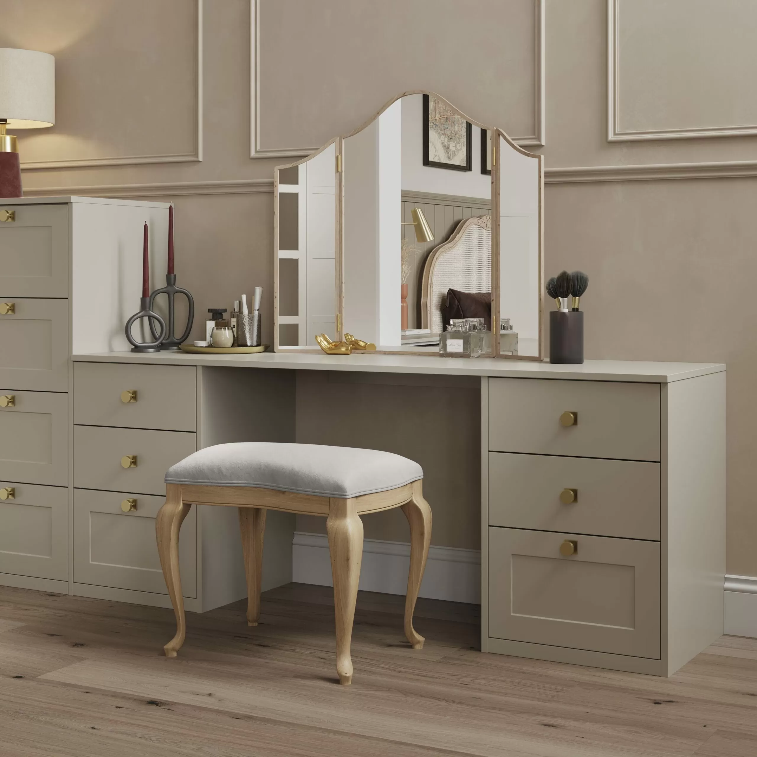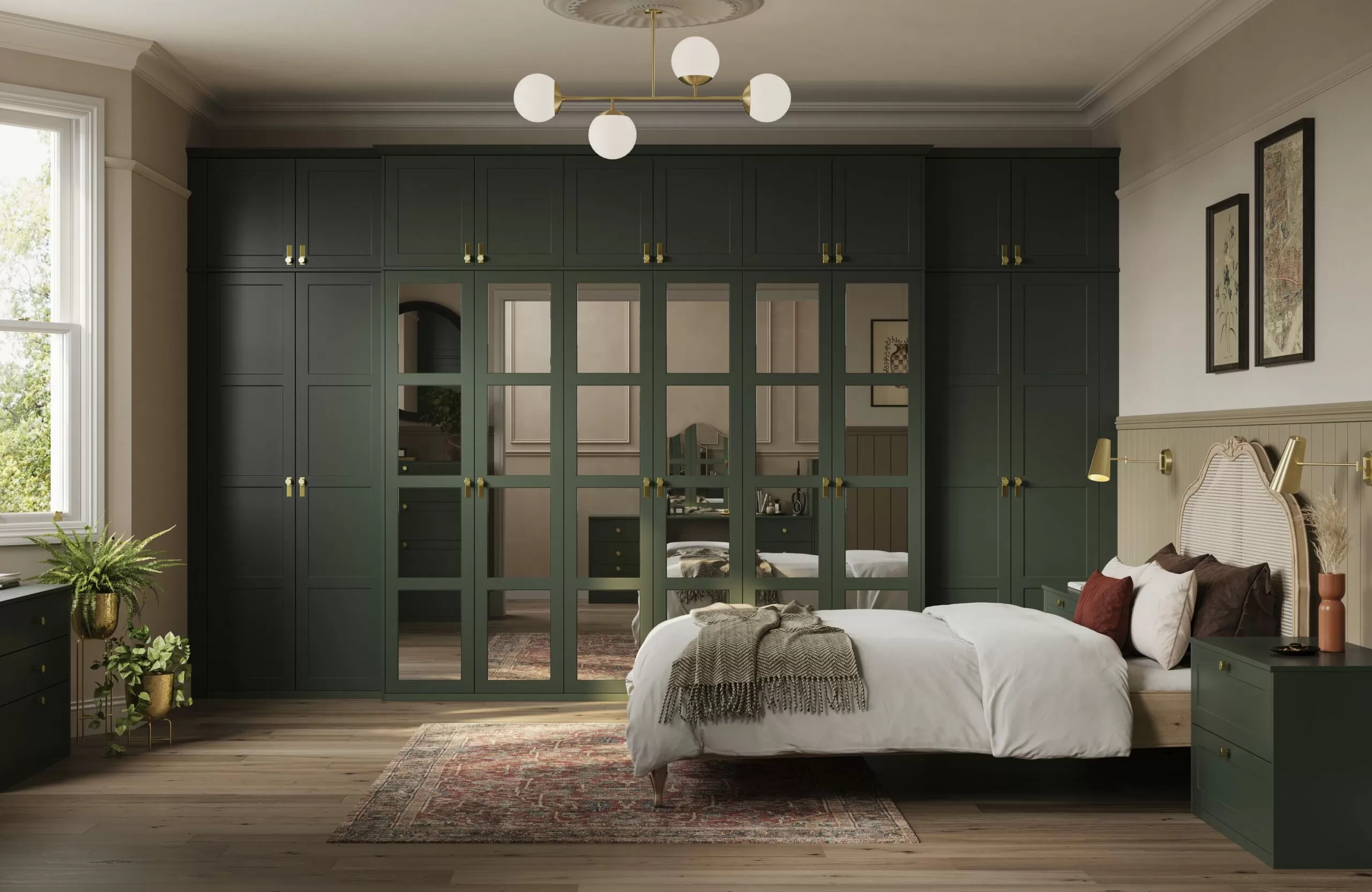 Nexus showcases its classic shaker design with paneled wardrobe doors including a mirrored door option. Complement this sophisticated design with on trend dark brass handles to create a stunning bedroom.