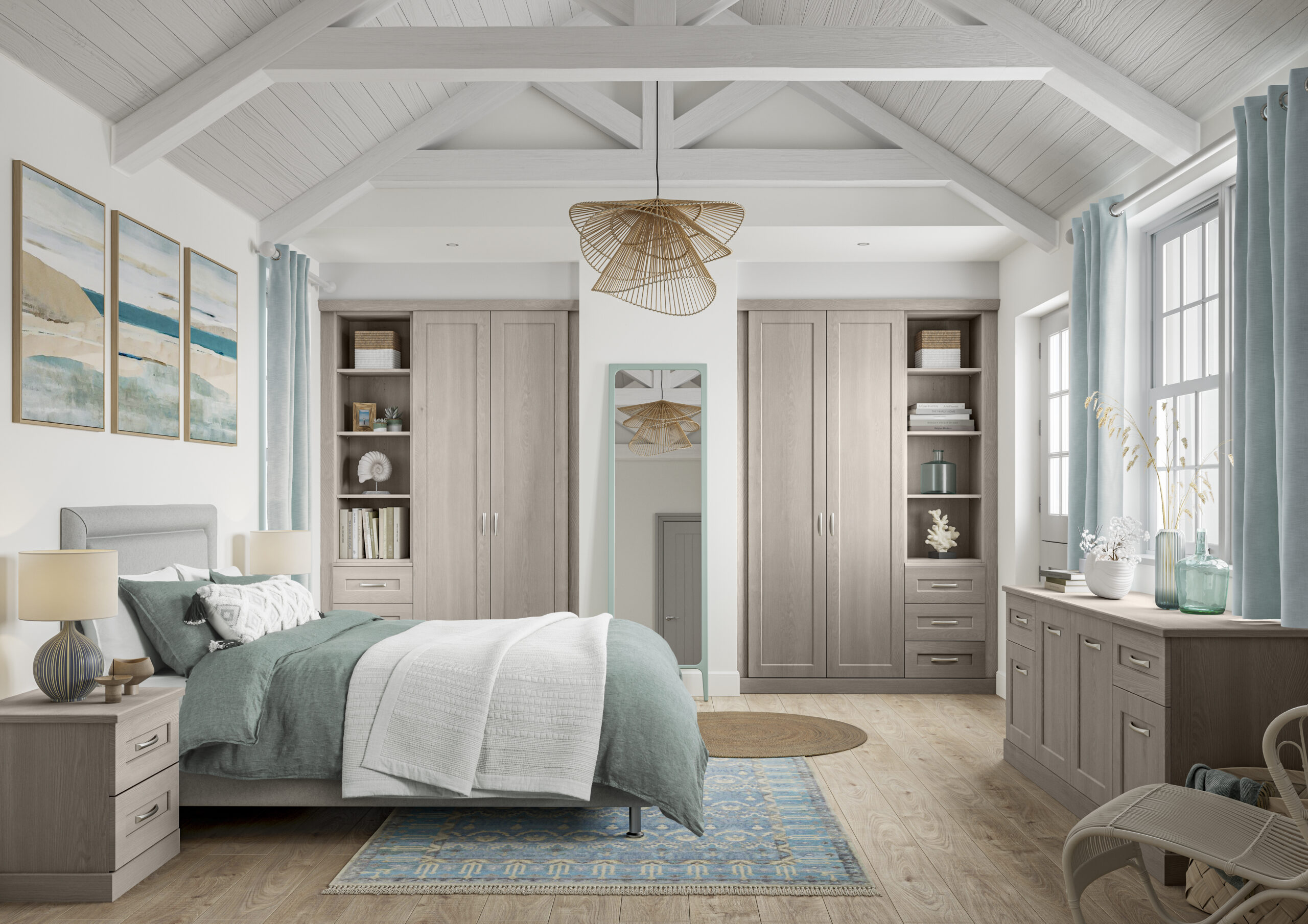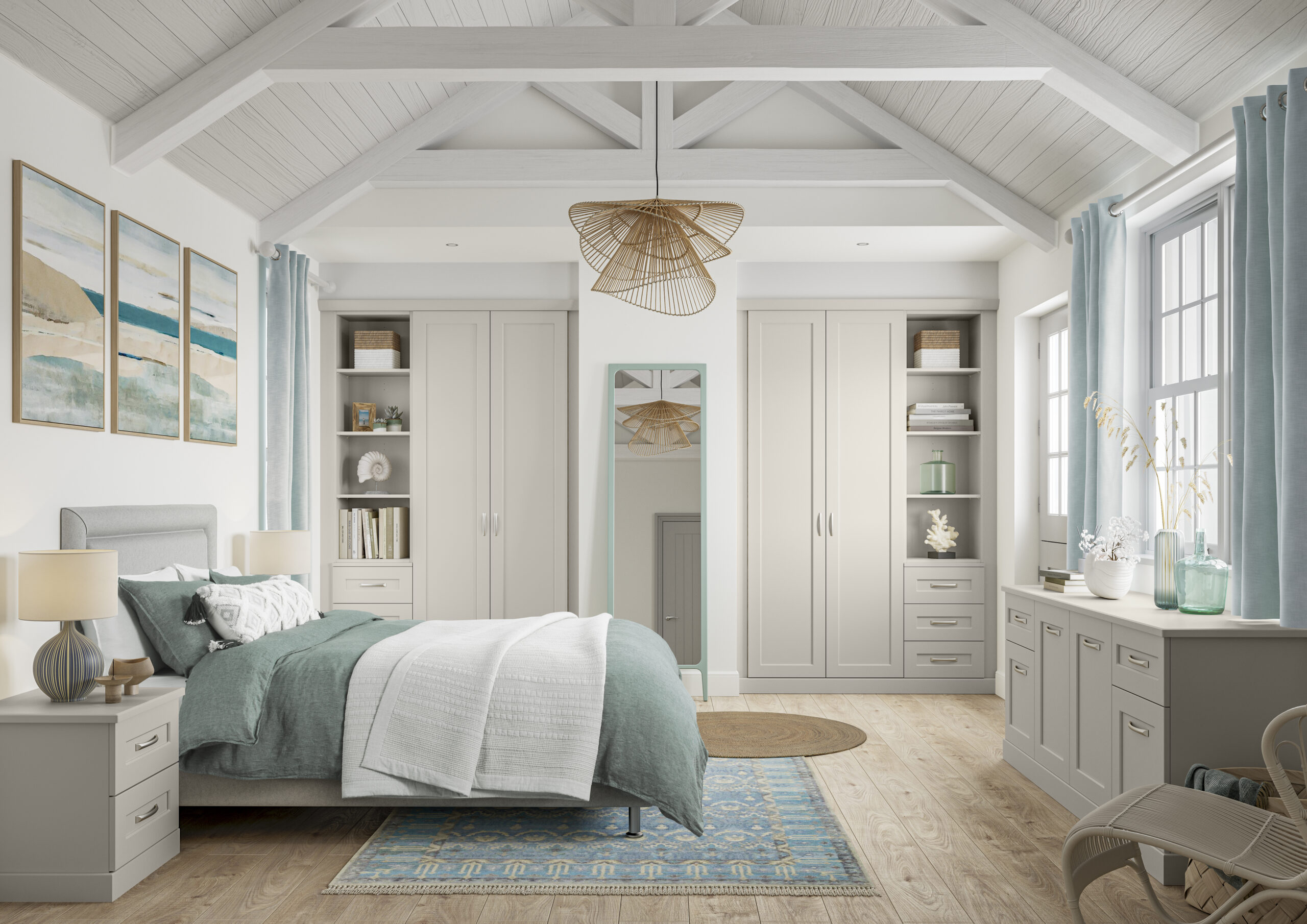 Hallaton’s unassuming clean lines and recessed single panels are unmistakably shaker. Hallaton is clean and versatile with optional full length mirrored doors that will bring brightness to any room. Available in a number of finishes, Hallaton works well in all environments to help you create your own stunning space.