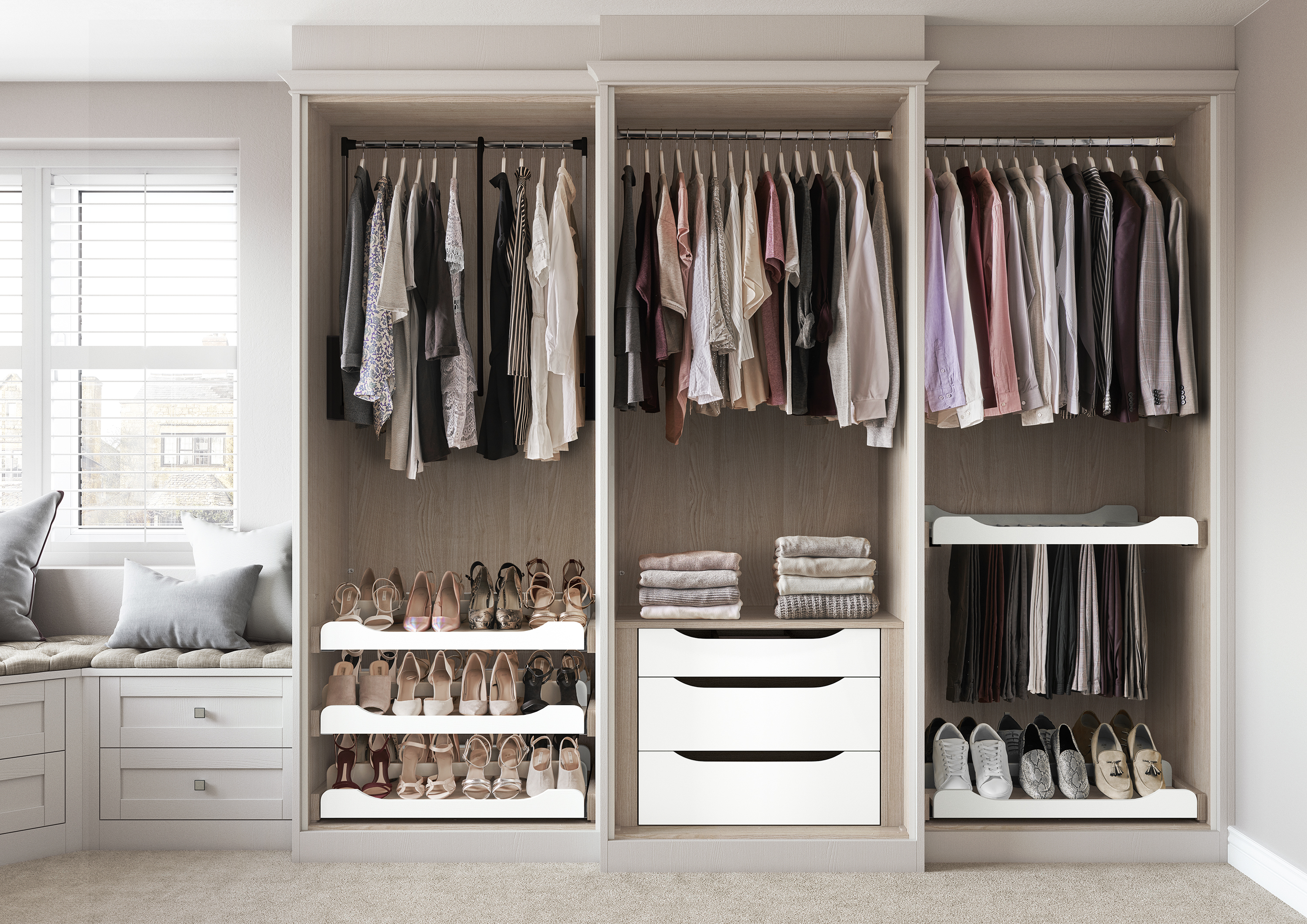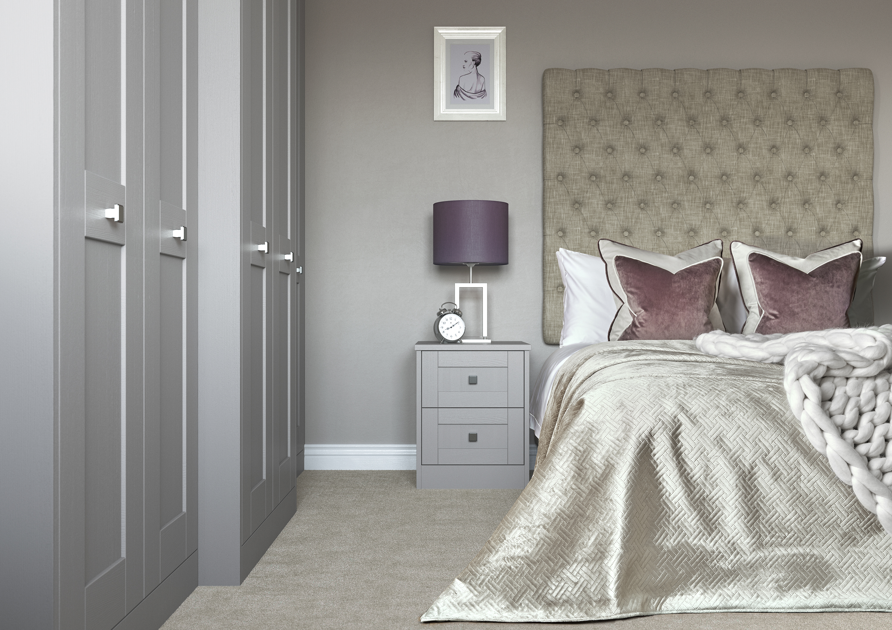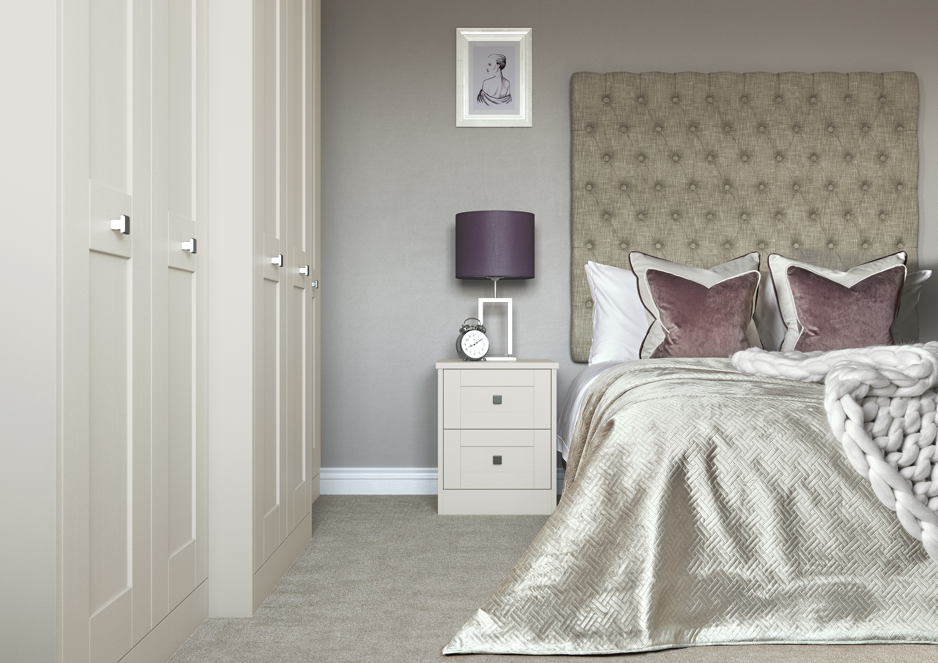 Milton is an instant Classic. An elegant and timeless shaker door style Painted in soft satin over light woodgrain and available in 12 colour options. Each of these colours can change the look of the room from the simple brightness of Soft White to a more urban and pared-down Light Praline. The look is completed by adding either a painted or satin Nickel handle.