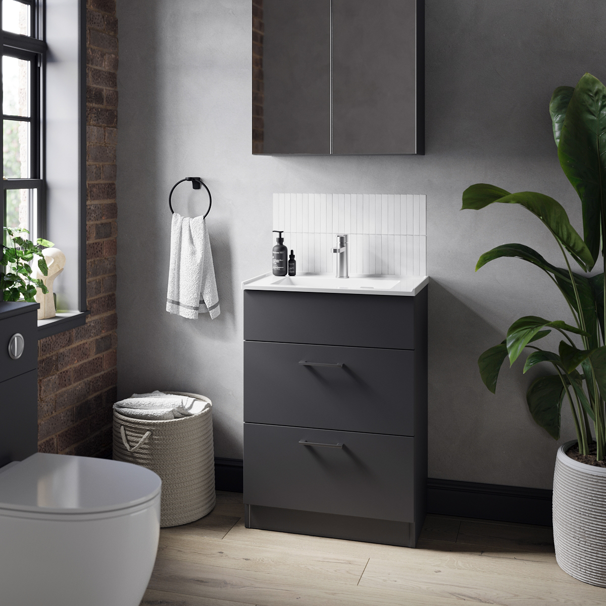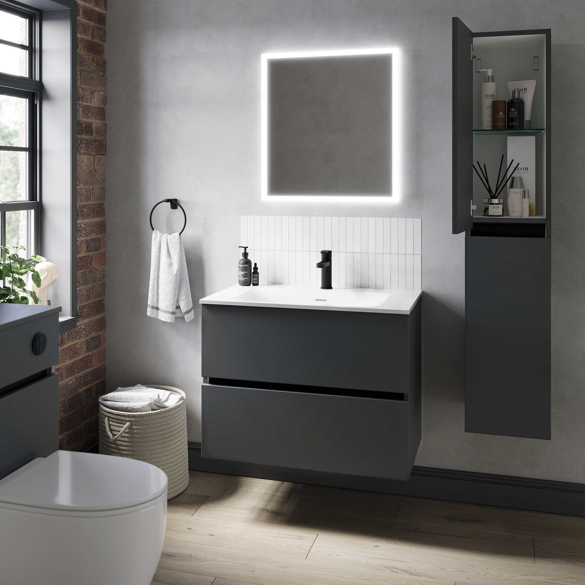 The rich, charcoal tone combined with the sleek, slab design makes these Tempo fronts a standout element in any space. Whether in a small WC or a larger family bathroom, the deep, dark colour creates a warm, intimate atmosphere. Choose from a variety of cupboard options to create a tailored fit for rooms of all sizes, providing ample storage while keeping essentials neatly tucked away.