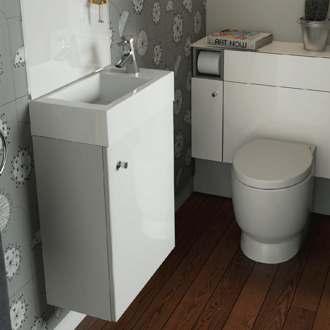 Cloakroom basin units 450mm wide, 255mm deep. If you're working with limited room in your bathroom, we have wall hung and freestanding basin unit solutions to maximise your space and still look great.